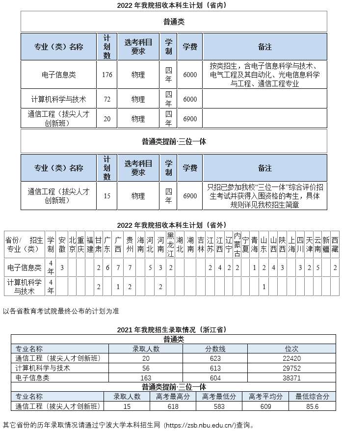 2022年信息科学与工程太阳城娱乐网 招收本科生计划和2021年招生情况