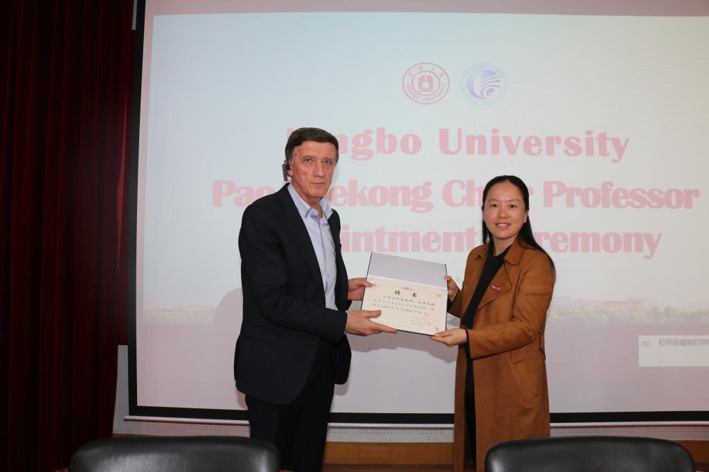 党委委员、组织部长、人才办主任胡敏出席聘任仪式并向比罗乌斯院士颁发了聘书并佩戴太阳城娱乐
