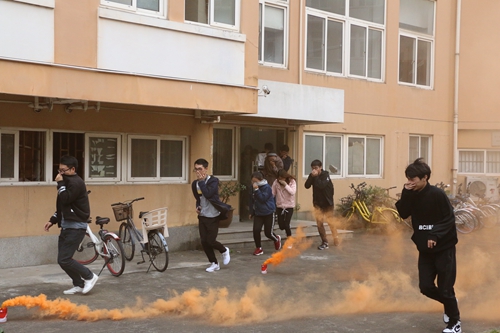 这次消防逃生演练分两个步骤进行:首先由副院长符冉迪做总动员,强调这次活动的安全要求,确保本次活动的圆满成功。保卫处干部徐老师具体为学生讲解了遇到火灾如何疏散逃生、在逃生过程中注意事项等消防疏散常识;介绍了逃生知识和技巧,并使学生意识到开展消防逃生演练的重要性和必要性。