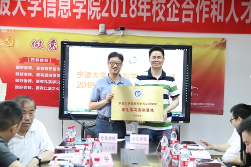 分别与TCL通讯(宁波)有限公司、宁波思艾特软件有限公司、莱茵技术-商检(宁波)有限公司、浙江商安信息科技有限公司、宁波方太厨具有限公司、中芯集成电路(宁波)有限公司、宁波腾翔信息系统工程有限公司以及三家校友企业:杭州车厘子智能科技有限公司(88外语来晓敏创办)、浙江悦讯信息科技有限公司(96自动化钟曙徽创办)、宁波酷趣网络科技有限公司(06计算机徐洪斌创办)10家企业签订了《共建大学生实习实训基地协议》,并授牌。至此,太阳城娱乐