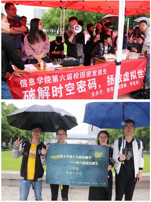5月5日上午,第六届密室逃生活动在南天门拉开帷幕。该活动采用当下较为流行的“密室逃脱”游戏玩法,设置包含智力运算、语言逻辑、线索找寻等类型的十余道关卡,最先通关的团队获得游戏胜利。当天天空虽然下着小雨,但同学们对于活动的热情不减,现场气氛十分热烈,吸引了三百余位同学参赛。最终“小龙虾队”获得冠军,活动取得圆满成功。