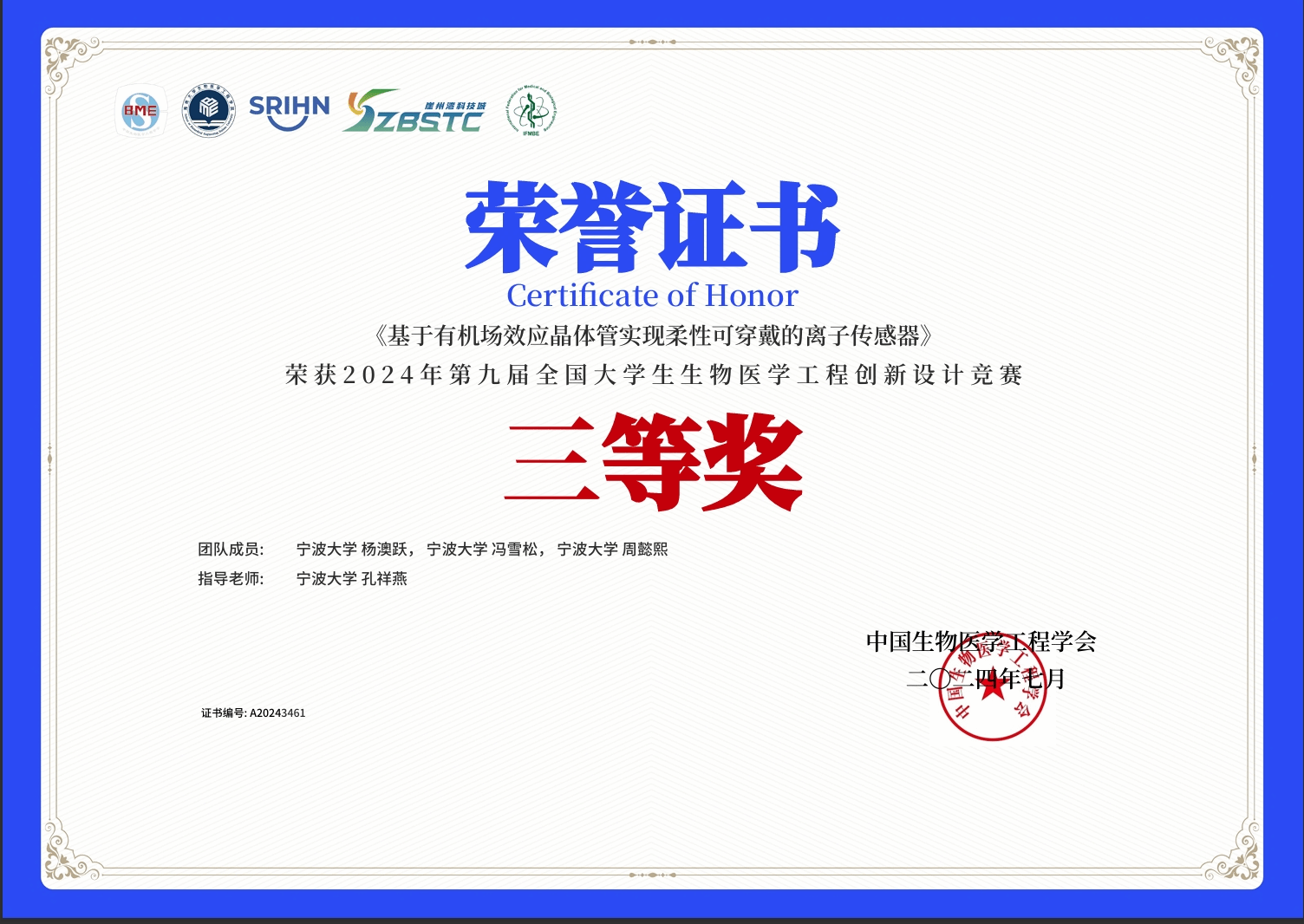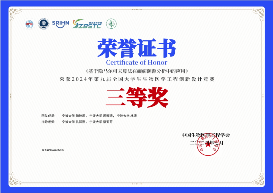 2024年7月22日至26日,第九届全国大学生生物医学工程创新设计竞赛在海南省三亚市海南大学举行。“全国大学生生物医学工程创新设计竞赛”是全国性大学生学科竞赛活动,竞赛以人类健康,疾病预防,诊断、治疗、康复等生物医学相关热点为主题,紧密围绕临床需求,基于生物、化学、物理原理方法,采用工程技术在生物医学领域的应用所开展的创新设计。