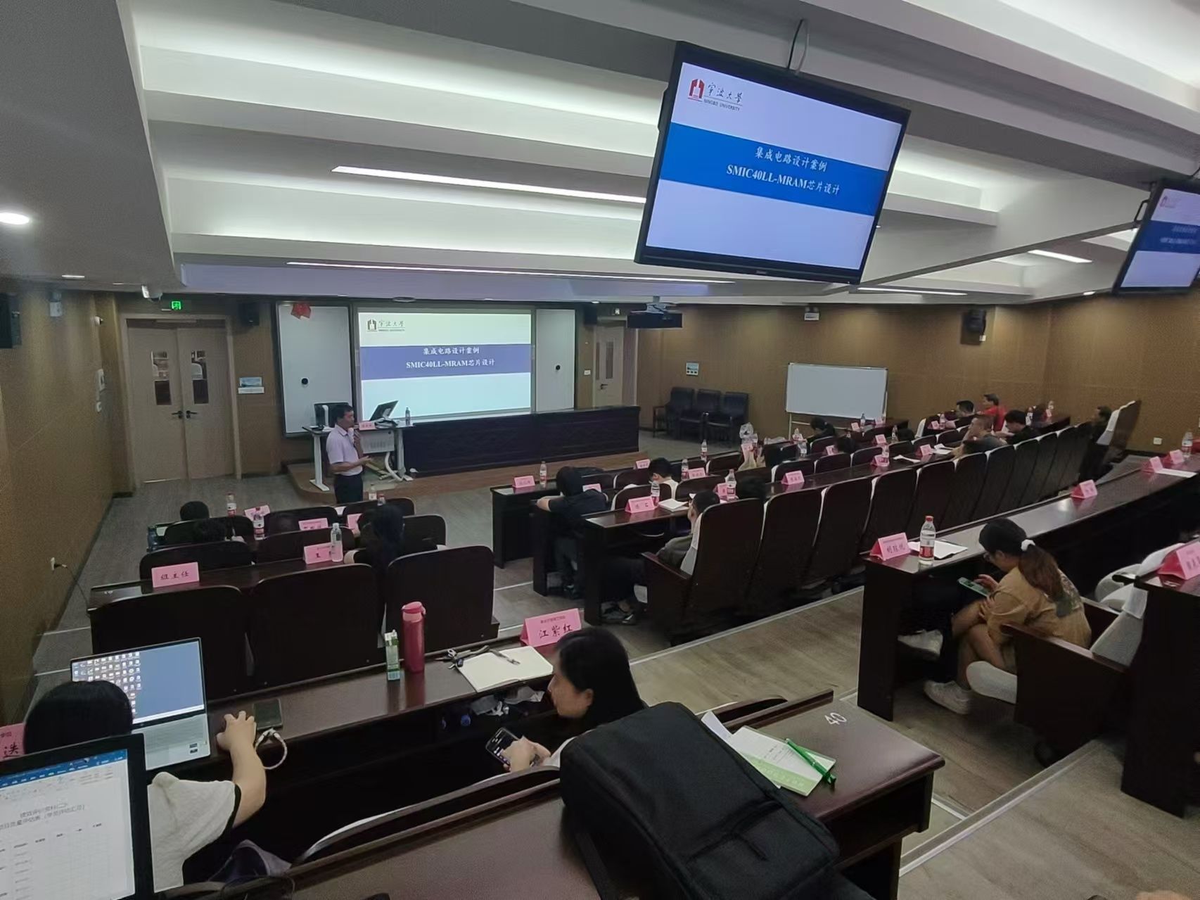 教授/博导张跃军进行了“高性能集成电路设计方法”的讲解。张教授是宁波市拔尖人才,在低功耗集成电路设计、物理不可克隆芯片技术及芯片侧信道攻击防御技术领域有深厚造诣,为学员们提供了高性能集成电路设计的宝贵经验。