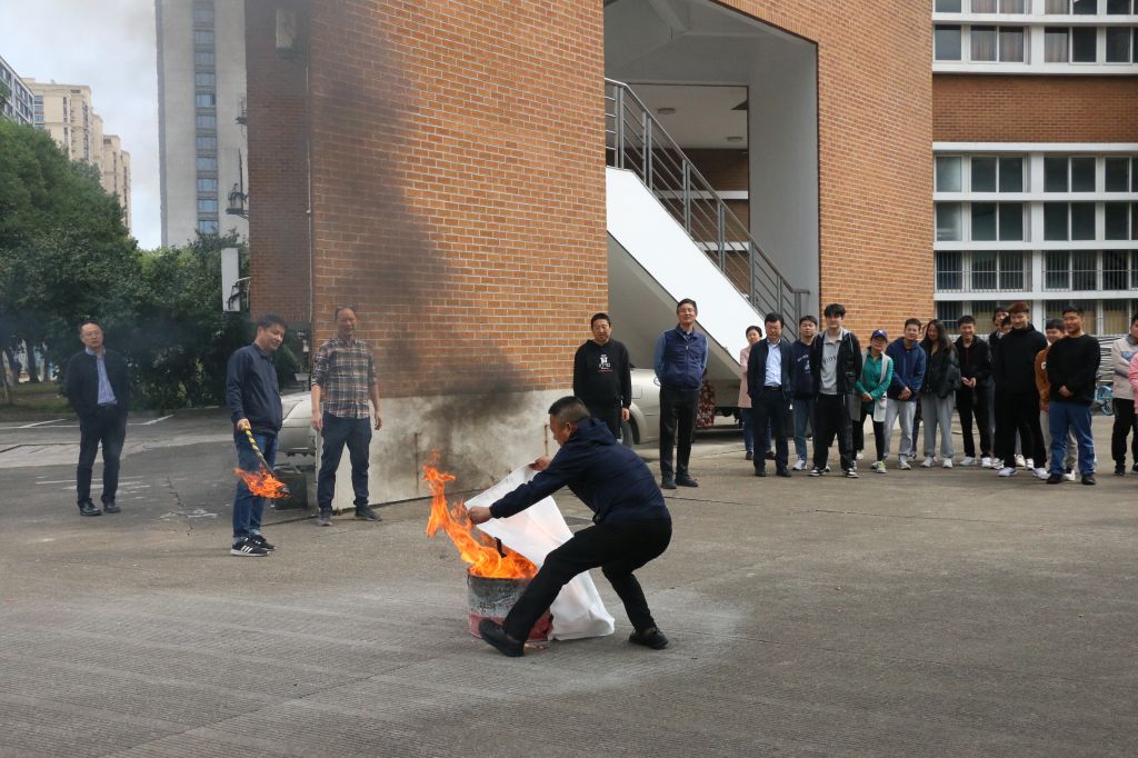 演练前,首先由保卫处干部郑老师具体为学生讲解了逃生知识和技巧,尤其对灭火器的操作方法和灭火毯的使用进行了现场演示。