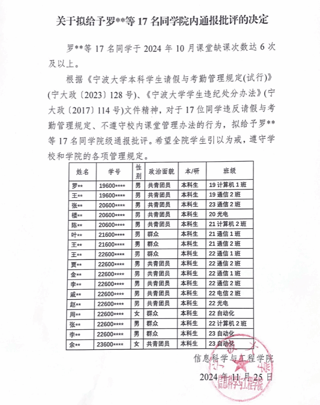 关于拟给予罗**等17名同太阳城娱乐网 内通报批评的决定