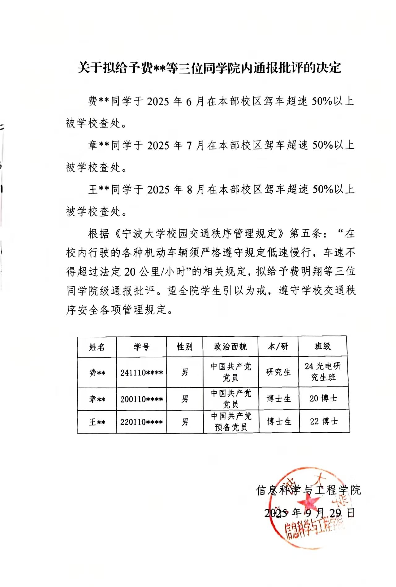 关于拟给予费**等三位同太阳城娱乐网 内通报批评的决定