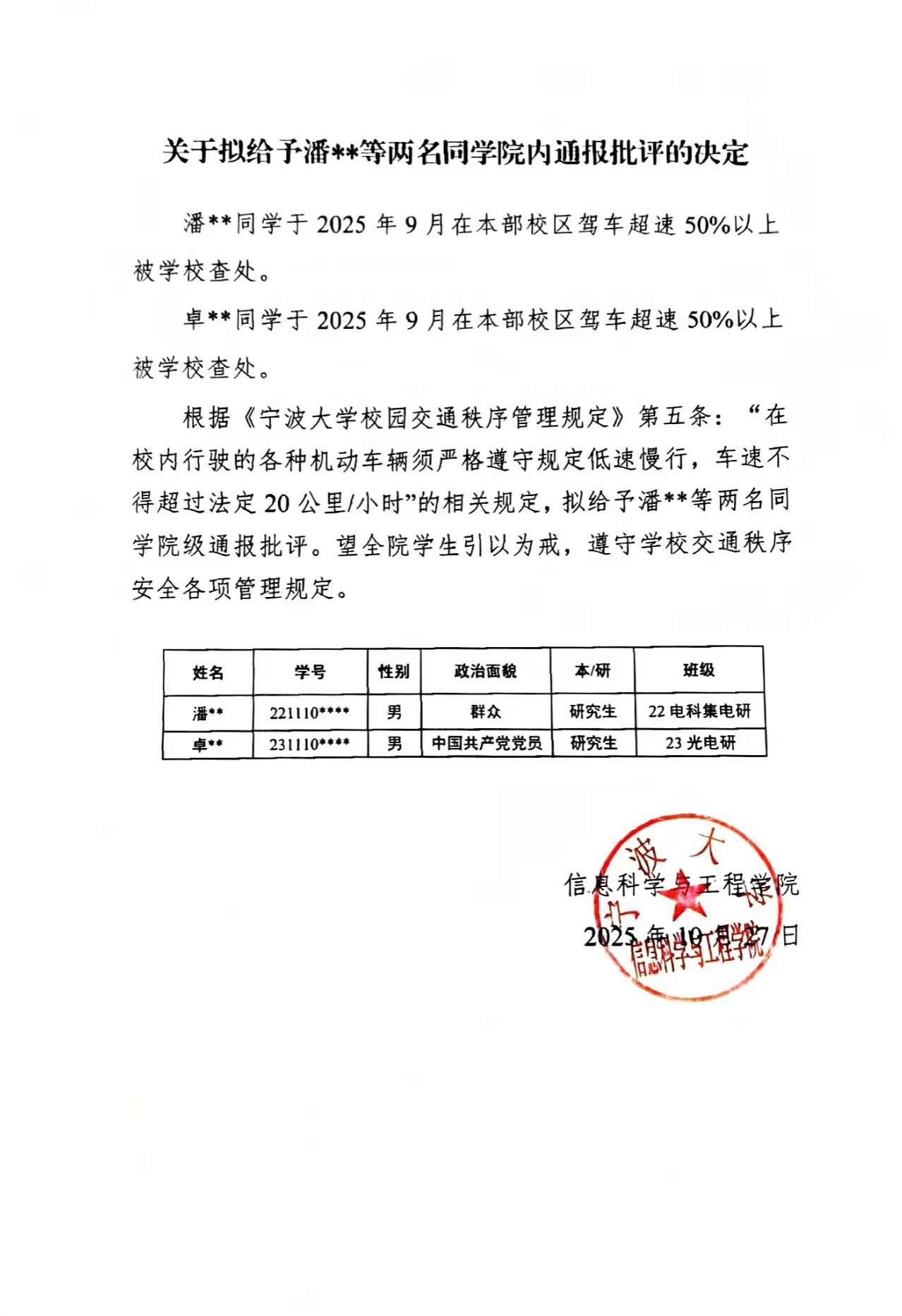 关于拟给予潘**等两名同太阳城娱乐网 内通报批评的决定
