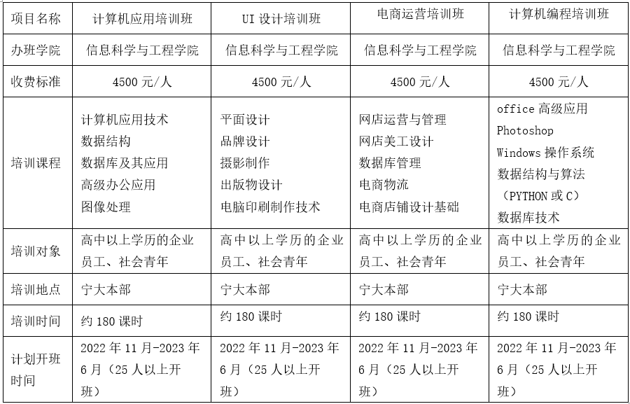 继续教育培训项目信息发布:计算机应用、UI设计、电商运营和计算机编程培训项目简介