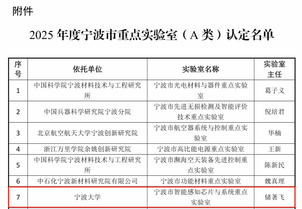申报的“宁波市智能感知芯片与系统“重点实验室成功获批。