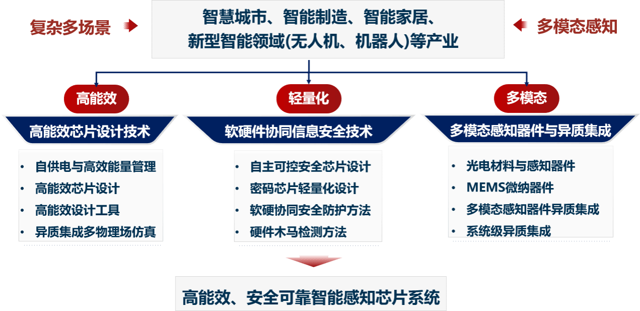 在材料、器件制备、集成电路设计、电子设计自动化(EDA)等领域的深厚技术积累和研发优势,瞄准集成电路产业在智慧城市、智能制造、智能家居、新型智能领域(无人机、机器人)等领域不断增长的技术需求,聚焦高能效芯片设计技术、轻量化软硬件协同信息安全技术以及多模态感知器件与异质集成三大核心研究方向,致力于发展高能效、安全可靠智能感知芯片系统。紧密对接宁波市集成电路和先进制造领域的产业资源,通过开展应用基础研究、关键技术突破、成果转化及人才培养等工作,完善宁波市集成电路产业链,助力浙江省在智能制造和集成电路产业的重点布局,为国家在人工智能、数字经济和科技创新领域的战略目标提供强有力的技术支撑。