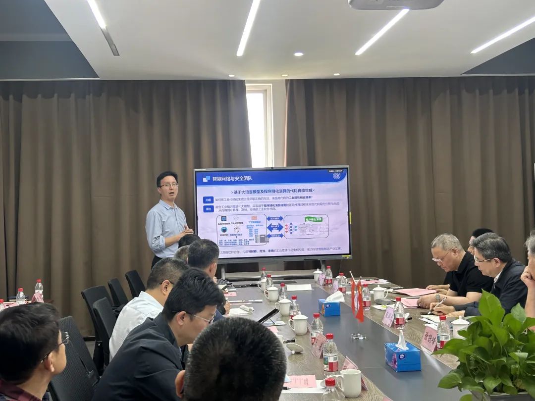 各科研团队负责人依次介绍了本团队在智能制造领域的研究方向和产业合作成果。智能网络与安全研究教学团队展示了在提高工业生产代码正确率方面的工作;先进智能传感技术科研团队展示了团队的高温气体传感器技术在新能源汽车领域的应用;SoC芯片设计科研团队展示了该团队芯片设计平台在华为等芯片产品中的应用;宁大乐歌研究院地方服务科研团队展示了该团队在人体工学方面的科研成果及与乐歌的企业合作;高端质谱技术及应用研究团队展示了该团队便携式筛查质谱仪在国家重大活动中的应用;无线通信测试测量技术及应用团队展示了该团队的微弱信号检测技术在无线测试产品中的应用。